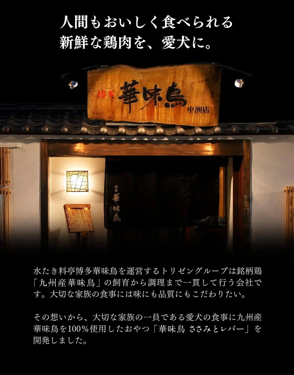 ブランド鶏「華味鳥」のささみとレバーだけでつくったパリッと香ばしいおやつ